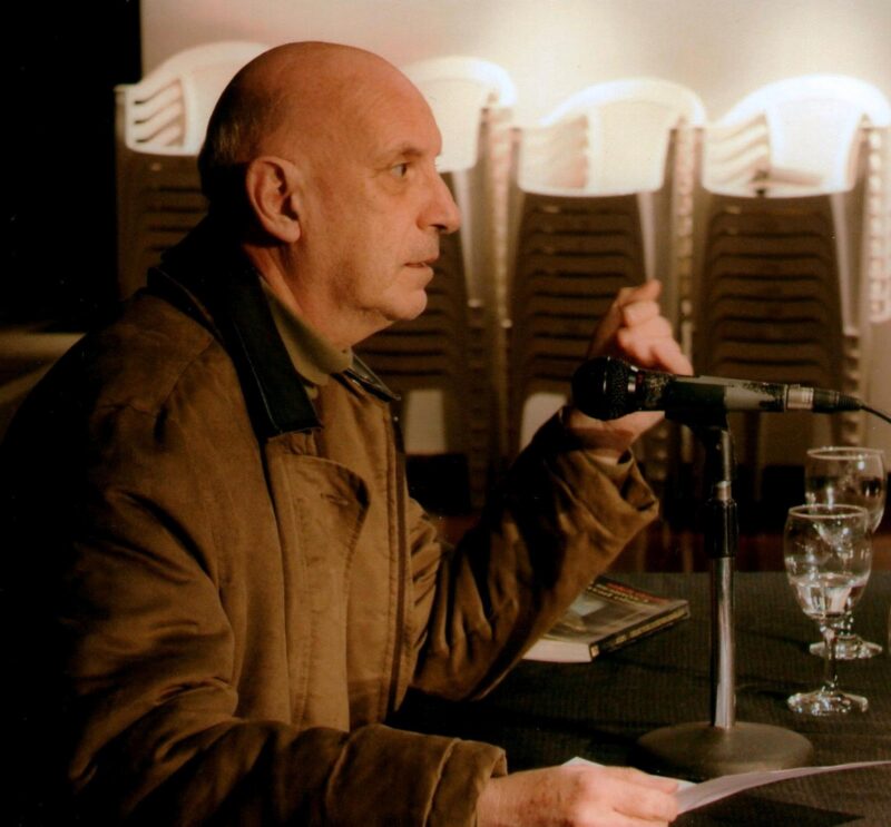 Daniel se entera de que en la Sociedad Argentina de Escritores se habían organizado talleres literarios de poesía. En esa época mi esposa, Beatriz Arias, era madre por segunda vez, y con los niños chiquitos mucho no podíamos hacer, por lo tanto, el elegido para averiguar fui yo. Combiné con Daniel Cejas y nos fuimos a la SADE Central, en la calle Uruguay. Nos indican que la clase de ese día ya había comenzado y nos tiramos el lance de ingresar a ella. Golpeamos suavemente la puerta alta y con lentitud la abrimos, pasamos, cerramos y nos quedamos de pie, muy quietos. Enfrentado a la puerta de entrada, sentado, detrás de un escritorio estaba un señor alto y calvo de ojos claros, rodeado de mesas y sillas con veinte o treinta participantes del taller. Interrumpimos sin decir una sola palabra y el silencio fue inmenso. Todos se dieron vuelta para ver quien entró.