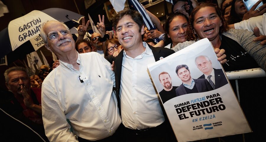 “Como los candidatos del Gobierno nacional no pueden recorrer la provincia para pedir el voto después de haber ajustado a los que menos tienen, lo hacen extorsionando a nuestro pueblo desde Estados Unidos: sepan que el 26 de octubre nadie se va a asustar y vamos a votar a Fuerza Patria con la cabeza en alto, pensando en el desarrollo y en el futuro”, afirmó el gobernador de la provincia de Buenos Aires, Axel Kicillof, al encabezar este miércoles un acto junto al dirigente Jorge Taiana en el municipio de Ezeiza.
